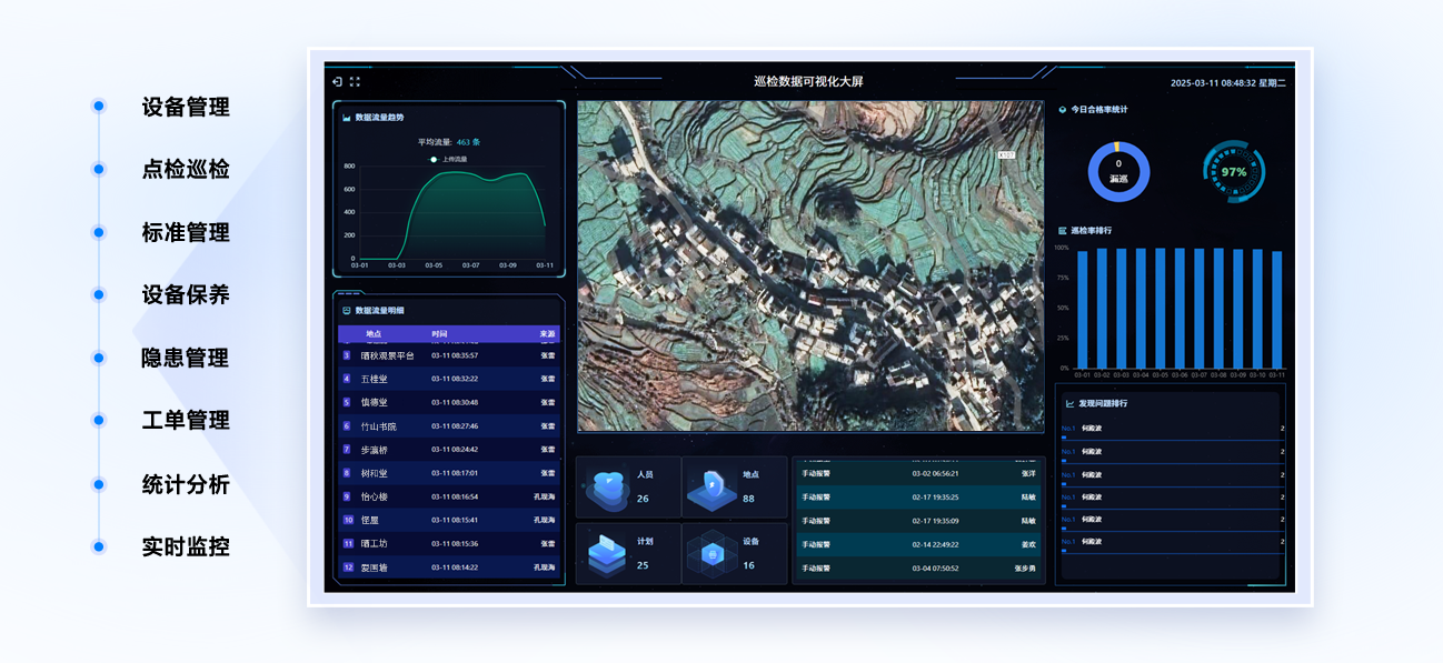 • 实时数据显示计划名称、巡检地点、巡检人员、巡检时间。