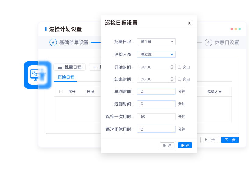 • 详细记录每一个巡检人员、巡检时间、巡检次数。