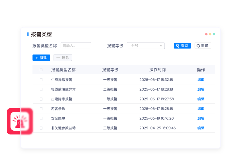 • 自定义报警类型和触发条件。