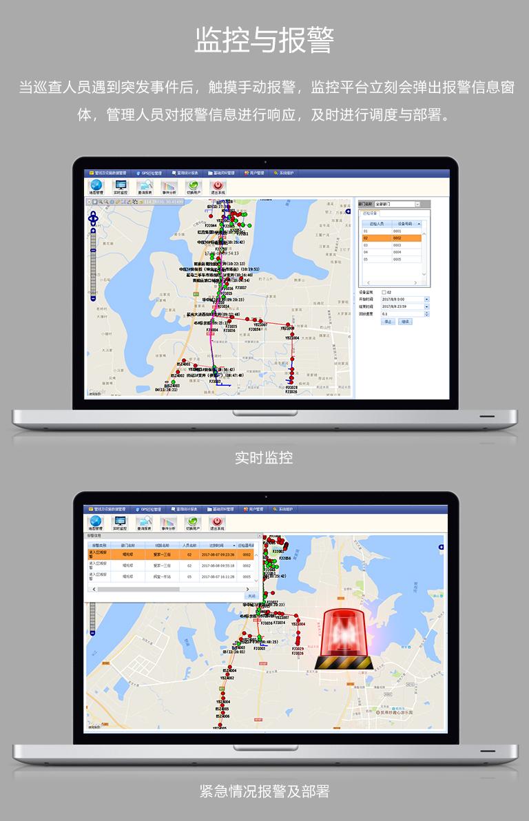 当巡查人员遇到突发事件后,触摸手动报警,监控平台立刻弹出报