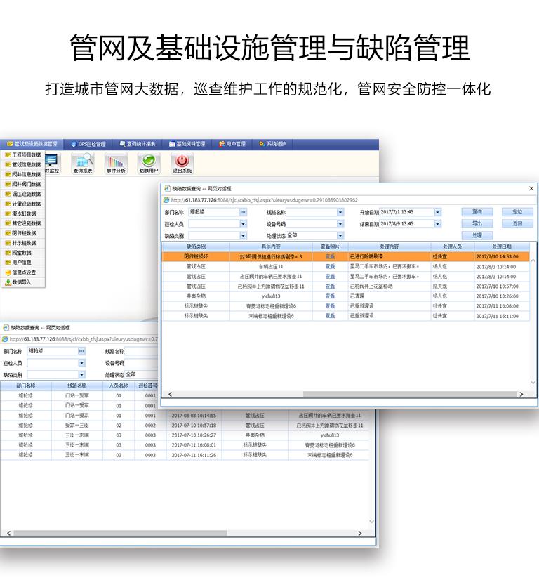 打造城市管网大数据,巡查维护工作的规范化,管网安全防控一体化。